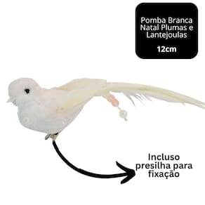 Encante sua decoração de Natal com este kit com 3 pombas decorativas, perfeitas para trazer leveza, paz e sofisticação aos seus ambientes. Cada pomba mede 12cm de comprimento por 4cm de altura e é cuidadosamente revestida com tecido tipo felpudo branco, além de penas artificiais e detalhes em lantejoulas, que adicionam brilho sutil e elegante.