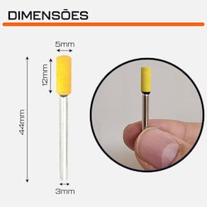 Kit com 3 Pontas Montadas Amarela 5mm Abrasiva Desbaste Fino Haste 3mm para Micro Retifica Dremax - Marca: Dremax - Kit exclusivo com 3 pontas amarelas - Diâmetro da cabeça: 5mm - Comprimento total: 44mm - Formato: Cilíndrica - Diâmetro da haste: 3mm - Gramatura: Grão 240 - Material da ponta: Óxido de alumínio Amarelo Corundum Premium - As pontas montadas AMARELAS são indicadas para uso geral, com resultado mais fino que as tradicionais pontas rosas - Uso em micro retíficas de qualquer marca com pinça de 3mm - Indicada para desbaste e pré-acabamento em metais, joias, pedras preciosas, vidro, entre outros materiais - Muito utilizada por ourives, relojoeiros, hobbistas e dentistas para desbastar e retificar peças em geral - Seu formato facilita o trabalho em locais de difícil acesso - : 90 dias contra defeitos de fabricação A DREMAX é a primeira e única marca brasileira dedicada exclusivamente às micro retíficas, acessórios e acoplamentos para esta indispensável ferramenta. Seja para trabalhos de precisão, artesanato, modelagem ou reparos, a DREMAX tem o produto certo para você. Marca: Não Informado Ean: 7734625994903