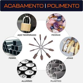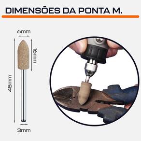 Jogo com 3 Pontas Montadas 6mm Cônica de Couro Haste 3mm para Polimento com Micro Retíficas Dremax - Marca: Dremax - Jogo Especial com 3 pontas montadas - Material: Couro de Vaca - Indicado para acabamento e polimento - Diâmetro da haste: 3mm - Diâmetro da ponta: 6mm - Altura da ponta: 16mm - Comprimento total: 45mm - Gramatura: Grão 180 - Formato: Cônica Ponta de Bala - As pontas montadas rosa são indicadas para uso geral - Uso em micro retíficas de qualquer marca com mandril de 3mm - Indicada para afiação, esmerilhamento e desbaste em metais, joias, pedras preciosas, vidro, entre outros materiais - Seu formato facilita o trabalho em locais de difícil acesso - : 90 dias contra defeitos de fabricação A DREMAX é a primeira e única marca brasileira dedicada exclusivamente às micro retíficas, acessórios e acoplamentos para esta indispensável ferramenta. Seja para trabalhos de precisão, artesanato, modelagem ou reparos, a DREMAX tem o produto certo para você - Ponta Montada Amarela: Alta dureza para polimento fino. Grão 240 - Ponta montada Azul: :Alta dureza para acabamento médio. Grão 150 - Ponta Montadas Rosa: Alta dureza e tenacidade acabamento grosso Grão. 120 - Ponta Montada Borracha Verde: Flexível, para retificação e polimento precisos. Grão 150 - Ponta Montada de Couro: Desempenho melhor do que a ponta de borracha verde, também ideal para polimento. Grão 180 - Ponta Montada Borracha com Abrasivos: Retificação mais nítida e rápida. Grão 120 - Ponta montada de Feltro: Polimento fino em metais e materiais não metálicos Marca: Não Informado Ean: 7734625990912