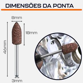 Kit 3 Ponta Montada 8mm Cônica Borracha com Abrasivos Haste 3mm para Micro Retíficas Dremax - Marca: Dremax - Jogo excusivo com 3 pontas - Diâmetro da Ponta: 8mm - Comprimento: 46mm - Haste das pontas: 3mm - Material: Borracha com Abrasivos - Gramatura: Grão 120 - Formato: Bala Cônica - Pontas montadas de borracha com abrasivos são maleáveis, porém com alto pode de desbaste devido os seus abrasivos - Uso em micro retíficas de qualquer marca com mandril de 3mm - Indicada para afiação, esmerilhamento e desbaste em metais, joias, pedras preciosas, vidro, entre outros materiais - Seu formato facilita o trabalho em locais de difícil acesso - : 90 dias contra defeitos de fabricação A DREMAX é a primeira e única marca brasileira dedicada exclusivamente às micro retíficas, acessórios e acoplamentos para esta indispensável ferramenta. Seja para trabalhos de precisão, artesanato, modelagem ou reparos, a DREMAX tem o produto certo para você. Marca: Não Informado