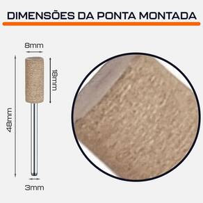 Jogo com 3 Pontas Montadas 8mm Cilíndrica de Couro Haste 3mm para Polimento com Micro Retíficas Dremax - Marca: Dremax - Kit exclusivo com 3 pontas montadas - Material: Couro de Vaca - Indicado para acabamento e polimento - Diâmetro da haste: 3mm - Diâmetro da ponta: 8mm - Altura da ponta: 18mm - Comprimento total: 48mm - Gramatura: Grão 180 - Formato: Cilíndrica Reta - As pontas montadas rosa são indicadas para uso geral - Uso em micro retíficas de qualquer marca com mandril de 3mm - Indicada para afiação, esmerilhamento e desbaste em metais, joias, pedras preciosas, vidro, entre outros materiais - Seu formato facilita o trabalho em locais de difícil acesso - Garantia: 90 dias contra defeitos de fabricação A DREMAX é a primeira e única marca brasileira dedicada exclusivamente às micro retíficas, acessórios e acoplamentos para esta indispensável ferramenta. Seja para trabalhos de precisão, artesanato, modelagem ou reparos, a DREMAX tem o produto certo para você - Ponta Montada Amarela: Alta dureza para polimento fino. Grão 240 - Ponta montada Azul: :Alta dureza para acabamento médio. Grão 150 - Ponta Montadas Rosa: Alta dureza e tenacidade acabamento grosso Grão. 120 - Ponta Montada Borracha Verde: Flexível, para retificação e polimento precisos. Grão 150 - Ponta Montada de Couro: Desempenho melhor do que a ponta de borracha verde, também ideal para polimento. Grão 180 - Ponta Montada Borracha com Abrasivos: Retificação mais nítida e rápida. Grão 120 - Ponta montada de Feltro: Polimento fino em metais e materiais não metálicos Marca: Dremax