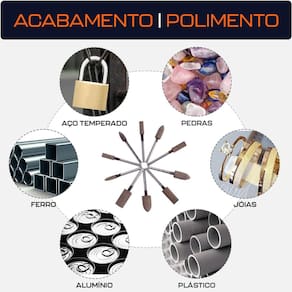 Jogo com 3 Pontas Montadas 8mm Cilíndrica de Couro Haste 3mm para Polimento com Micro Retíficas Dremax - Marca: Dremax - Kit exclusivo com 3 pontas montadas - Material: Couro de Vaca - Indicado para acabamento e polimento - Diâmetro da haste: 3mm - Diâmetro da ponta: 8mm - Altura da ponta: 18mm - Comprimento total: 48mm - Gramatura: Grão 180 - Formato: Cilíndrica Reta - As pontas montadas rosa são indicadas para uso geral - Uso em micro retíficas de qualquer marca com mandril de 3mm - Indicada para afiação, esmerilhamento e desbaste em metais, joias, pedras preciosas, vidro, entre outros materiais - Seu formato facilita o trabalho em locais de difícil acesso - : 90 dias contra defeitos de fabricação A DREMAX é a primeira e única marca brasileira dedicada exclusivamente às micro retíficas, acessórios e acoplamentos para esta indispensável ferramenta. Seja para trabalhos de precisão, artesanato, modelagem ou reparos, a DREMAX tem o produto certo para você - Ponta Montada Amarela: Alta dureza para polimento fino. Grão 240 - Ponta montada Azul: :Alta dureza para acabamento médio. Grão 150 - Ponta Montadas Rosa: Alta dureza e tenacidade acabamento grosso Grão. 120 - Ponta Montada Borracha Verde: Flexível, para retificação e polimento precisos. Grão 150 - Ponta Montada de Couro: Desempenho melhor do que a ponta de borracha verde, também ideal para polimento. Grão 180 - Ponta Montada Borracha com Abrasivos: Retificação mais nítida e rápida. Grão 120 - Ponta montada de Feltro: Polimento fino em metais e materiais não metálicos Marca: Dremax Ean: 7734625990684