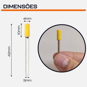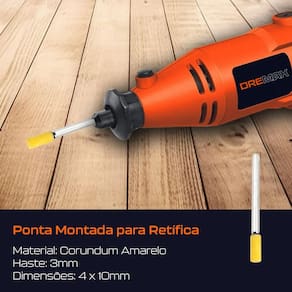 Kit com 3 Pontas Montadas Amarela 4mm Abrasiva Desbaste Leve Haste 3mm para Micro Retifica Dremax - Marca: Dremax - kit exclusivo com 3 pontas amarelas - Diâmetro da cabeça: 4mm - Comprimento total: 42mm - Formato: Cilíndrica - Diâmetro da haste: 3mm - Gramatura: Grão 240 - Material da ponta: Óxido de alumínio Amarelo Corundum Premium - As pontas montadas AMARELAS são indicadas para uso geral, com resultado mais fino que as tradicionais pontas rosas - Uso em micro retíficas de qualquer marca com pinça de 3mm - Indicada para desbaste e pré-acabamento em metais, joias, pedras preciosas, vidro, entre outros materiais - Muito utilizada por ourives, relojoeiros, hobbistas e dentistas para desbastar e retificar peças em geral - Seu formato facilita o trabalho em locais de difícil acesso - : 90 dias contra defeitos de fabricação A DREMAX é a primeira e única marca brasileira dedicada exclusivamente às micro retíficas, acessórios e acoplamentos para esta indispensável ferramenta. Seja para trabalhos de precisão, artesanato, modelagem ou reparos, a DREMAX tem o produto certo para você. Marca: Dremax Ean: 7734625994927