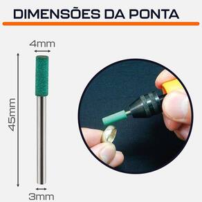 Kit 3 Ponta Montada Cilíndrica 4mm de Borracha Abrasiva Haste 3mm para Micro Retifica Dremax - Marca: Dremax - Jogo exclusivo com 3 pontas de 4mm em borracha - Diâmetro da cabeça: 4mm - Diâmetro da haste: 3mm - Comprimento total: 45mm - Gramatura: Grão 180 - Material da ponta: Borracha - Material da haste: aço inox - Pontas montadas de borracha Flexível, para retificação e polimento precisos - Uso em micro retíficas e mini lixadeiras de qualquer marca com mandril de 3mm - Seu formato facilita o trabalho em locais de difícil acesso - Uso em micro retíficas de qualquer marca com pinça de 3mm - Indicado para desbaste e semi-acabamento - Remoção de ferrugem de metal enferrujado, tratamento em joias e pré-acabamento em pedras, ouro e prata - Amplamente utilizado em moagem, molde, equipamentos médicos, equipamentos de beleza, manicure, ouro e prata jóias, aço inoxidável, vidro equipamentos, peças de máquinas e outros processos - Muito menos agressivo que tubos de lixa e pontas montadas rosa - Muito utilizado na primeira etapa no processo de polimento - Garantia: 90 dias contra defeitos de fabricação A DREMAX é a primeira e única marca brasileira dedicada exclusivamente às micro retíficas, acessórios e acoplamentos para esta indispensável ferramenta. Seja para trabalhos de precisão, artesanato, modelagem ou reparos, a DREMAX tem o produto certo para você. Marca: Dremax