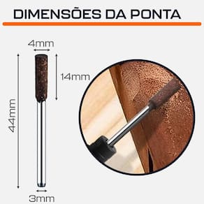Kit com 3 Ponta Montada 4mm Cilíndrica Borracha com Abrasivos Haste 3mm para Micro Retíficas Dremax - Marca: Dremax - Jogo exclusivo com 3 pontas - Diâmetro da Ponta: 4mm - Comprimento: 40mm - Haste das pontas: 3mm - Material: Borracha com Abrasivos - Gramatura: Grão 120 - Pontas montadas de borracha com abrasivos são maleáveis, porém com alto pode de desbaste devido os seus abrasivos - Uso em micro retíficas de qualquer marca com mandril de 3mm - Indicada para afiação, esmerilhamento e desbaste em metais, joias, pedras preciosas, vidro, entre outros materiais - Seu formato facilita o trabalho em locais de difícil acesso - : 90 dias contra defeitos de fabricação A DREMAX é a primeira e única marca brasileira dedicada exclusivamente às micro retíficas, acessórios e acoplamentos para esta indispensável ferramenta. Seja para trabalhos de precisão, artesanato, modelagem ou reparos, a DREMAX tem o produto certo para você. Marca: Não Informado Ean: 7734625987868