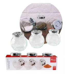 Kit 3 Porta Condimentos em Vidro Tampa Cromada com 150ml Conjunto Porta Mantimentos de Vidro 150ml - Elegância e Praticidade