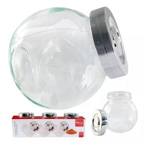 -01 Conjunto com 3 Porta Mantimentos de Vidro - 150ml cada, com Tampas Cromadas.