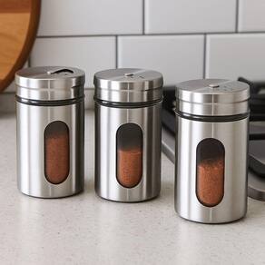 Kit 3 Porta Temperos Inox E Vidro Visor E Tampa Dosadora