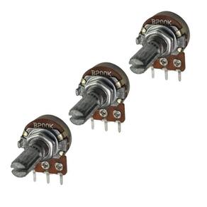 Kit 3 Potenciômetro 200K B L20 Eixo Longo Sem Chave
