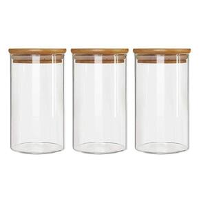Kit 3 Potes Borossilicato Hermético Tampa Bambu 800ml ClassFeito com material sustentável 100% bambu, é muito resistente, leve e durável.Ideal para guardar alimentos secos e manter sua cozinha muito organizada.O pote possui a tampa de bambu com um design prático e compacto, garantindo a conservação dos alimentos, sua tampa um anel de silicone com ótimo sistema de vedação, que impede a entrada e saída de ar.Uma opção prática e versátil que além de permitir o armazenamento de diversos alimentos, também pode ser utilizado como objeto de decoração criativa.Dicas de Conservação:- Não coloque na Lava-louça.- O bambu não gosta de umidade então precisa ficar em local bem seco e arejado.- Não coloque no Micro-ondas.Características:- Altura: 16,7cm- Diâmetro: 8,5cm- Capacidade: 800ml- Material: Vidro, bambu e silicone- Marca: Class HomeConteúdo: 03 Potes.Medidas aproximadas. Imagens meramente ilustrativas.Somos a CASAMIGA, uma loja especializada em utilidades doméstica e decoração.