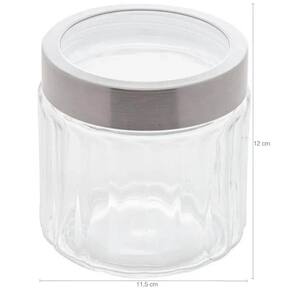 Garantia: 90 dias / Peso: 1,422kg / Cor predomiante: inox / Ref: 7798138263987; Dimensões de cada pote: 11,5cm (D) x 12cm (A); Dimensões da tampa de cada pote: 11cm (D) x 2,5cm (A); Dimensões área de uso de cada pote: 11,5cm (D) x 11cm (A); Capacidade: 870ml cada; Materiais: vidro borossilicato, aço inox e acrílico; Conteúdo: 3 porta mantimentos de vidro Lyor.