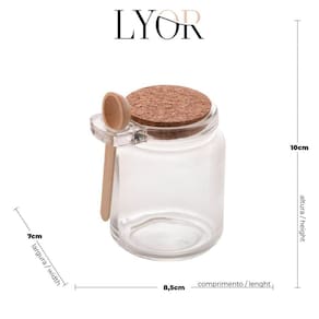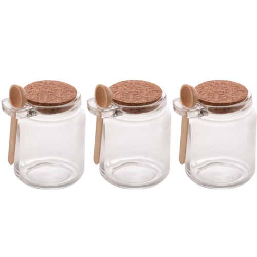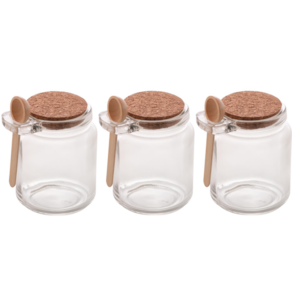 Contém: 03 Potes de Vidro com colher em Bambu e Tampa Rolha 240ml Lyor