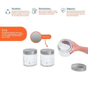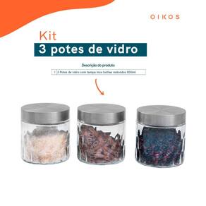 O kit contém: 3 potes bolhas 800ml de vidro com tampa inox redondo Comprimento: 11cm Largura: 12cm Altura: 11cm