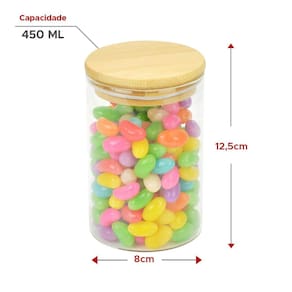 Kit 3 Potes de Vidro Hermético Vidro e Bambu 450ml VDA14104 Organize sua cozinha de forma bonita e eficiente com esse pote de vidro hermético, ele é perfeito para armazenar temperos e outros diversos tipos de condimentos, por ter vedação em silicone na tampa preserva o sabor, aroma e crocância dos alimentos armazenados, pode ser Utilizado também como porta objetos e tudo mais que você quiser guardar. PRINCIPAIS DESTAQUES - Kit com 3 Potes de 450ml - De vidro e Bambu - Tampa de bambu com vedação em silicone - Tampa de bambu com agentes bactericidas - Capacidade de 450ml - Dimensões: 8 x 12,5 cm largura x altura