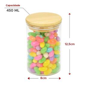 Kit 3 Potes de Vidro Hermético Vidro e Bambu 450ml VDA14104 Organize sua cozinha de forma bonita e eficiente com esse pote de vidro hermético, ele é perfeito para armazenar temperos e outros diversos tipos de condimentos, por ter vedação em silicone na tampa preserva o sabor, aroma e crocância dos alimentos armazenados, pode ser Utilizado também como porta objetos e tudo mais que você quiser guardar. PRINCIPAIS DESTAQUES - Kit com 3 Potes de 450ml - De vidro e Bambu - Tampa de bambu com vedação em silicone - Tampa de bambu com agentes bactericidas - Capacidade de 450ml - Dimensões: 8 x 12,5 cm largura x altura