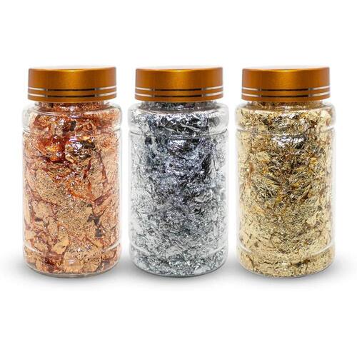 Kit 3 Potes Grandes Folhas De Ouro Dourado Prata Bronze Unha