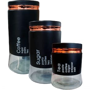 1 ;Pote De Vidro Com Tampa Hermético Coffee Grande;1 Pote De Vidro Com Tampa Hermético Sugar Médio;1 Pote De Vidro Com Tampa Hermético Tea Pequeno;