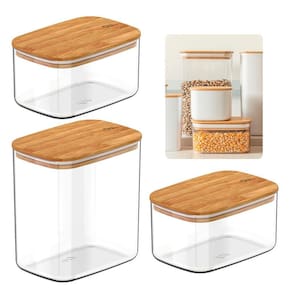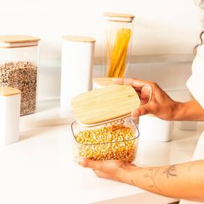 Descrição do Produto: Perfeito para facilitar o armazenamento e organização dos seus alimentos, o Kit de Potes Herméticos Keep traz transparência para uma visualização rápida e prática do conteúdo. Seu design modular possibilita uma arrumação personalizada, mantendo o padrão de altura entre os potes. A tampa de bambu, aliada ao anel de silicone, proporciona uma vedação hermética, preservando a qualidade dos alimentos e agregando um toque de sofisticação ao ambiente.