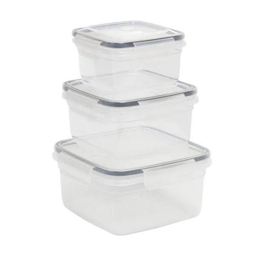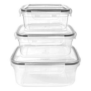 Kit 3 Potes Herméticos Conjunto Quadrado Plástico Plasvale Conjunto De 3 Potes Herméticos Com Travas De Plástico 500ml, 900ml e 1500ml