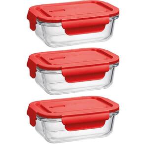 3 Potes Herméticos de Vidro Borossilicato 410ml cada Vermelho Uz Porta Mantimentos Marmita.
