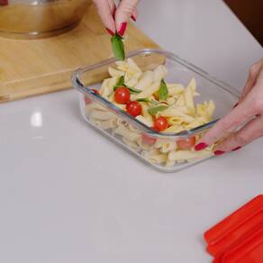 Os potes herméticos de vidro UZ, design retangular na cor vermelha, são recipientes versáteis projetados para armazenar, aquecer e transportar alimentos com praticidade e estilo. Com capacidade de 410ml cada, é um tamanho conveniente para armazenar porções individuais de alimentos, tornando-o adequado para armazenar frutas e snacks. A forma retangular dos potinhos de vidro é prática para organizar alimentos e refeições, além de facilitar o encaixe em bolsas, mochilas ou lancheiras. As tampas herméticas são projetadas para criar uma vedação segura, evitando vazamentos e mantendo a frescura dos alimentos.