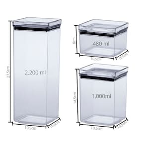 O KIT é composto por 3 (três) potes herméticos quadrados com as seguintes descrições:
