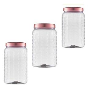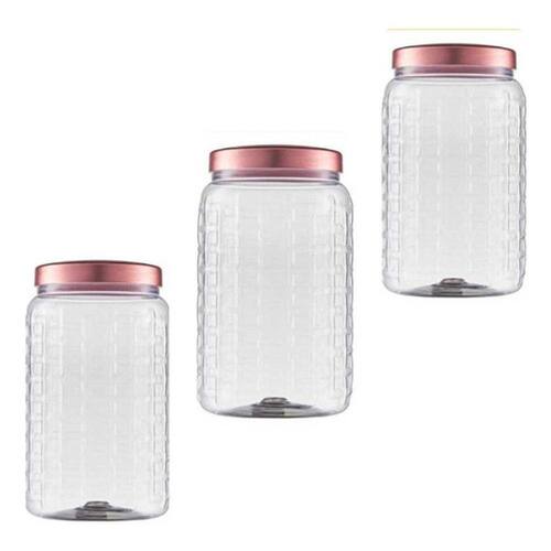 03- Pote com Tampa Rosê Metalizada 1,5L Bandeirantes ======================================================================= BENEFÍCIOS: - Além de armazenar o alimento, você pode guardar grãos, torradas, biscoitos e muito mais. - Ele tem um design arrojado e moderno - Além disso, é um item ideal para dar um toque especial na decoração da sua casa - Possui uma tampa metalizada na cor rosê o que traz muito mais charme para sua cozinha ======================================================================= CARACTERÍSTICAS: - Modelo: Tampa Metalizada - Altura : 20 cm - Largura: 10 cm - Profundidade : 10 cm - Marca: Bandeirantes Itens inclusos: 03 Pote Matte com Tampa Rosê Metalizada Bandeirantes 1,5L Este produto chegará em 01 volume Ean: 7907141990883