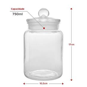 Com medidas de 17cm de altura por 10,5cm de largura, cada pote possui capacidade para 750ml, proporcionando amplo espaço para armazenar seus alimentos.