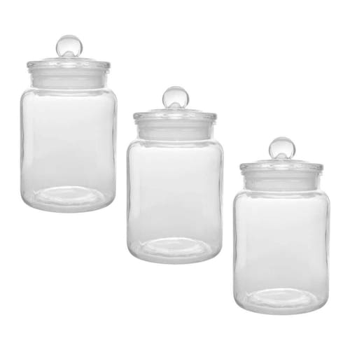 Kit 3 Potes Porta Mantimentos Vidro Arena 750ml Tampa Lyor