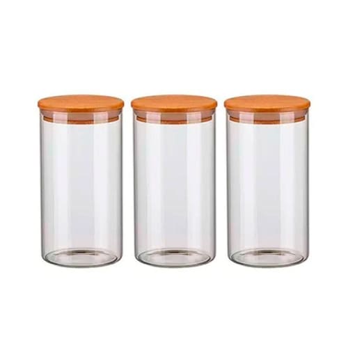 Kit 3 Potes de Vidro Hermético 1300ml Com Tampa de Madeira Bambu Porta Condimentos Pote Hermético de Vidro com Tampa de Bambu: Conservação Elegante e Eficiente para seus Alimentos