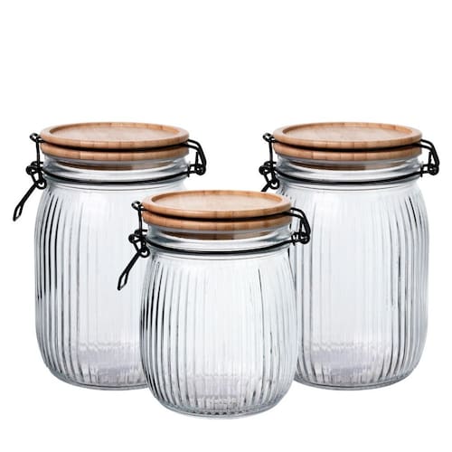 Kit 3 Potes Vidro Hermético Versalhe Tampa Bambu Trava Black