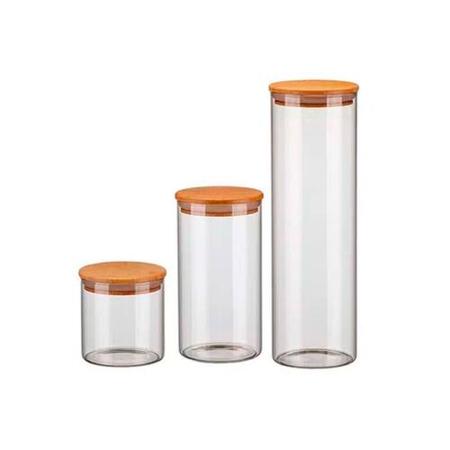 Kit 3 Potes de Vidro Porta Condimentos Com Tampa de Madeira Bambu Porta Condimentos 500ML, 1,3L e 2L Pote Hermético de Vidro com Tampa de Bambu: Conservação Elegante e Eficiente para seus Alimentos