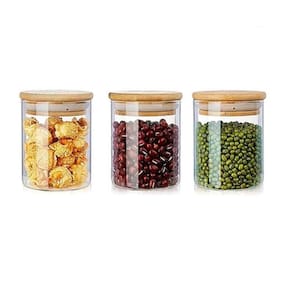 Características: - Altura: 9cm - Diâmetro: 8,2cm - Capacidade: 200ml - Material: Vidro, bambu e silicone - Marca: Class Home Conteúdo: 03 Potes.