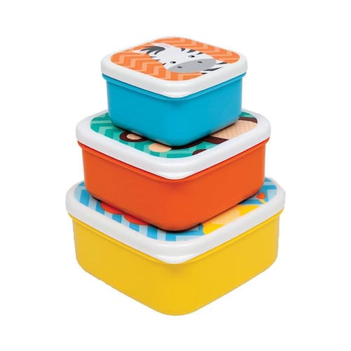 O Kit 3 Potinhos Coloridos Animais da Buba é ideal para armazenar as papinhas, frutinhas e alimentos do bebê, para proteger, congelar ou aquecer sem perder o frescor. Ele possui tampas decoradas com encantadores desenhos e em tamanhos de 100ml, 250ml e 400ml, podem ir ao freezer, micro-ondas e lava-louça, além de serem livres de BPA e Ftalatos, práticos e seguros.