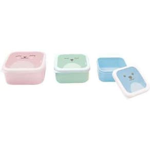 Capacidade: 1 Pote 400ml - tamanho 10,5 x 10,5 x 4,5 cm 1 Pote 250ml - tamanho 9 x 9 x 3,8 cm 1 Pote 100ml - tamanho 6,5 x 6,5 x 3,5 cm Cuidados Lavar com água morna com sabão líquido neutro. Pode ser usado em máquina lava-louças, no cesto superior. Enxaguem bem. Secar ao ar. Não ferver ou esterilizar.