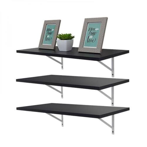 Kit 3 Prateleiras 60 x 30cm Preta Com Mão Francesa. A prateleira Crie Fácil foi desenvolvida pensando em deixar o seu ambiente mais organizado e criativo de forma prática e simples. Produto produzido em MDP de alta qualidade garantindo resistência e durabilidade. A prateleira é acompanhada de suporte para fixação de embutir invisível. Cor: Preto. Tamanho: 60 x 30cm. Material: Madeira MDP. Fixação: embutir invisível. Instruções de uso e instalação: Para fácil limpeza, utilize pano levemente umedecido. Não utilizar produtos químicos ou abrasivos. Acompanha embalagem com as instruções de montagem e fixação. *Observação: todos os itens de decoração das fotos não acompanham o produto