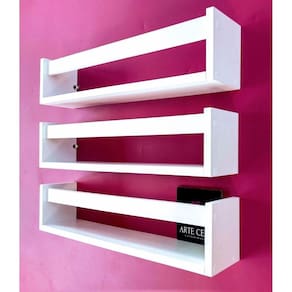 - kit com 3 prateleiras porta livros e multiuso brancas. - kit instalação do produto. - decora o quarto do seu bebê com sofisticação e beleza. - organiza seus ambientes. - incentiva a criança á leitura. - liberdade de imaginação na instalação. - produto versátil, perfeito para qualquer ambiente, quarto, cozinha, banheiro etc. - fácil instalação, bastando fixar na parede. - suporta até 8 kilos. Material