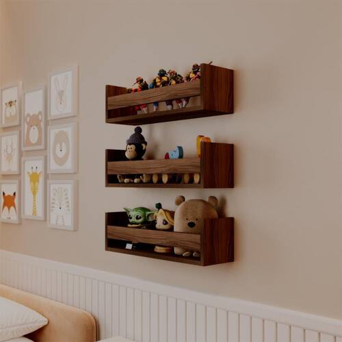 Kit 3 Prateleiras Porta Brinquedos Nogal 50 x 12cm Suporte Invisivel - Marrom