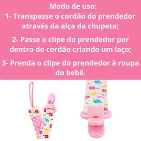 Com o clipe fácil de prender na roupinha do bebê, você nunca mais terá que se preocupar com a chupeta caindo no chão. Mantenha a chupeta sempre limpa e acessível ao seu bebê, evitando quedas, perdas ou contaminações indesejadas.