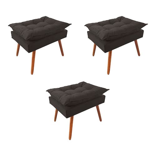 Kit 3 Puff Opala Premium Almofadada para Decoracao Sala de Estar Veludo Cinza Grafite