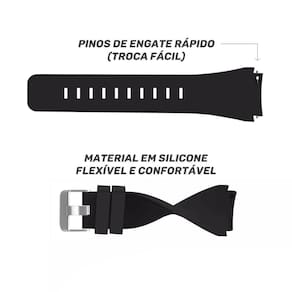 Material: silicone macio, confortável e flexível Comprimento: 125mm - 97mm com a fivela Encaixe: 22mm com pinos de engate rápido troca fácil Fivela: aço inoxidável