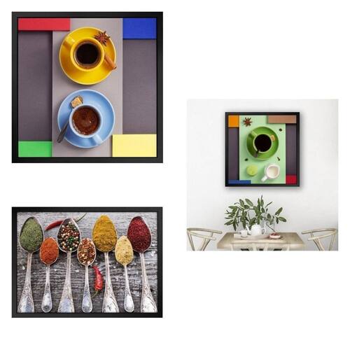 Desperte os sentidos e transforme sua cozinha com o Kit Cozinha Tropical Artes ? composto por 2 Quadros 50cm x 50cm e 1 Quadro 60cm x 80cm, essa coleção celebra o aroma, o sabor e a estética do café de forma elegante e acolhedora.