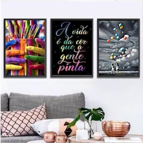 Kit 3 quadros a vida é da cor que a gente pinta 33x24cm - com vidro