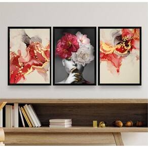 Kit 3 Quadros Modernos Sala Abstrato Mulheres 24X18Cm Vidro