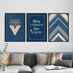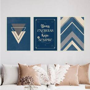 Não perca a oportunidade de transformar sua casa com o Kit 3 Quadros Abstratos Azuis Boas Energias 45X34Cm. Garanta já o seu e deixe sua decoração ainda mais especial e única.