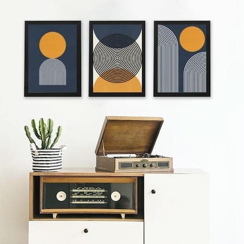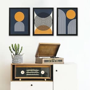 Kit 3 quadros abstratos azul e mostarda- círculos 24x18cm Moldura: madeira preta Informações do produto tire todas as suas dúvidas no descritivo abaixo: decoração para quarto, sala, cozinha, escritório, área gourmet e muito mais. Chega de paredes vazias medidas - cada peça tem 24x18cm a5 . Material do papel - papel fotográfico brilhante de altíssima resolução acabamento - todos os quadros são acompanhados de uma película de acetato para proteção da imagem. - os quadros são embalados de forma segura com plástico bolha com camada dupla de acordo com o tamanho dos quadros. Garantia - garantia de 3 meses. Meu quadro chegou. Como posso fixá-lo Você precisa apenas de um martelo e um prego, pois os quadros já vão acompanhados de penduradores. Esta é a forma mais indicada. Caso prefira, você pode utilizar uma fita dupla face neste caso, sugerimos de alta qualidade para evitar que descole e seu quadro caia . Como posso limpar meu quadro A limpeza é feita como um móvel comum da sua casa. Apenas um pano seco ou espanador são suficientes para tal Ean: 7896238918896