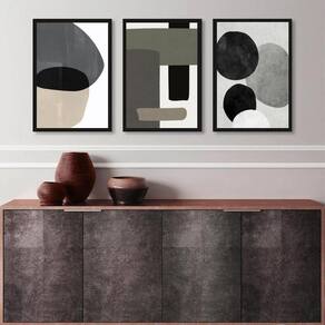 Kit 3 quadros abstratos decoração industrial- cinza e preto 45x34cm - com vidro