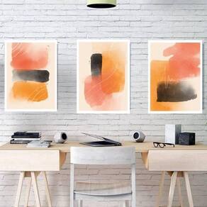 Kit 3 quadros abstratos laranja e preto 45x34cm - com vidro Moldura: madeira branca Informações do produto tire todas as suas dúvidas no descritivo abaixo: decoração para quarto, sala, cozinha, escritório, área gourmet e muito mais. Chega de paredes vazias medidas - cada peça tem 45x34cm a3 . Material do papel - papel fotográfico brilhante de altíssima resolução acabamento - todos os quadros são acompanhados de vidro para proteção da imagem. - moldura em madeira maciça na cor preta e pendurador . - os quadros são embalados de forma segura com plástico bolha com camada dupla de acordo com o tamanho dos quadros. - de 3 meses. Meu quadro chegou. Como posso fixá-lo Você precisa apenas de um martelo e um prego, pois os quadros já vão acompanhados de penduradores. Esta é a forma mais indicada. Como posso limpar meu quadro A limpeza é feita como um móvel comum da sua casa. Apenas um pano seco ou espanador são suficientes para tal