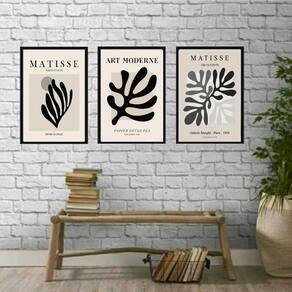 Kit 3 Quadros Arte Moderna Folhas Abstratas Matisse 45X34Cm
