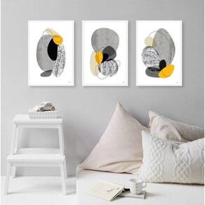 Kit 3 quadros abstratos minimalistas preto cinza amarelo 24x18cm Moldura: madeira branca Informações do produto tire todas as suas dúvidas no descritivo abaixo: decoração para quarto, sala, cozinha, escritório, área gourmet e muito mais. Chega de paredes vazias medidas - cada peça tem 24x18cm a5 . Material do papel - papel fotográfico brilhante de altíssima resolução acabamento - todos os quadros são acompanhados de uma película de acetato para proteção da imagem. - os quadros são embalados de forma segura com plástico bolha com camada dupla de acordo com o tamanho dos quadros. Garantia - garantia de 3 meses. Meu quadro chegou. Como posso fixá-lo Você precisa apenas de um martelo e um prego, pois os quadros já vão acompanhados de penduradores. Esta é a forma mais indicada. Caso prefira, você pode utilizar uma fita dupla face neste caso, sugerimos de alta qualidade para evitar que descole e seu quadro caia . Como posso limpar meu quadro A limpeza é feita como um móvel comum da sua casa. Apenas um pano seco ou espanador são suficientes para tal Ean: 7892579559316